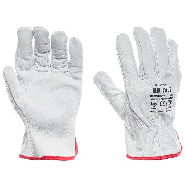 Manușile de protecție CIPRUS A DCT sunt realizate din piele naturală de bovină de înaltă calitate, finisată într-o nuanță elegantă de alb. Designul include un elastic la încheietură poziționat pe partea exterioară, care asigură o potrivire optimă pe mână și facilitează îmbrăcarea și dezbrăcarea rapidă.