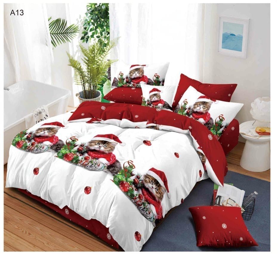 Lenjerie Finet cu Mos Craciun, Pat Dublu 6 piese A13