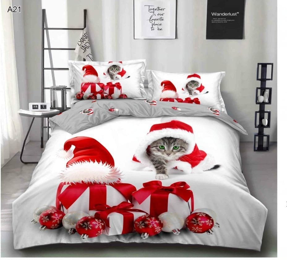 Lenjerie finet cu Mos Craciun, pentru pat dublu cu 6 piese, identica cu poza.